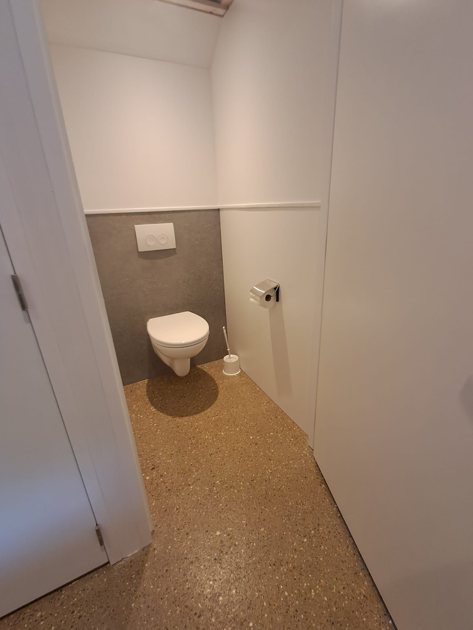 Der kleinste Raum der Wohnung mag zwar kompakt sein, ist aber keineswegs der kleinste. Hier finden Sie alles, was Sie für einen komfortablen Aufenthalt benötigen. Das Badezimmer verfügt über eine Dusche mit modernem Thermostatmischer, deren kraftvoller Strahl perfekt für einen belebenden Start in den Tag ist. Die Toilette ist separat und bietet zusätzliche Privatsphäre. Alles wurde sorgfältig gestaltet, um Ihnen trotz seiner bescheidenen Größe einen angenehmen und funktionalen Raum zu bieten.