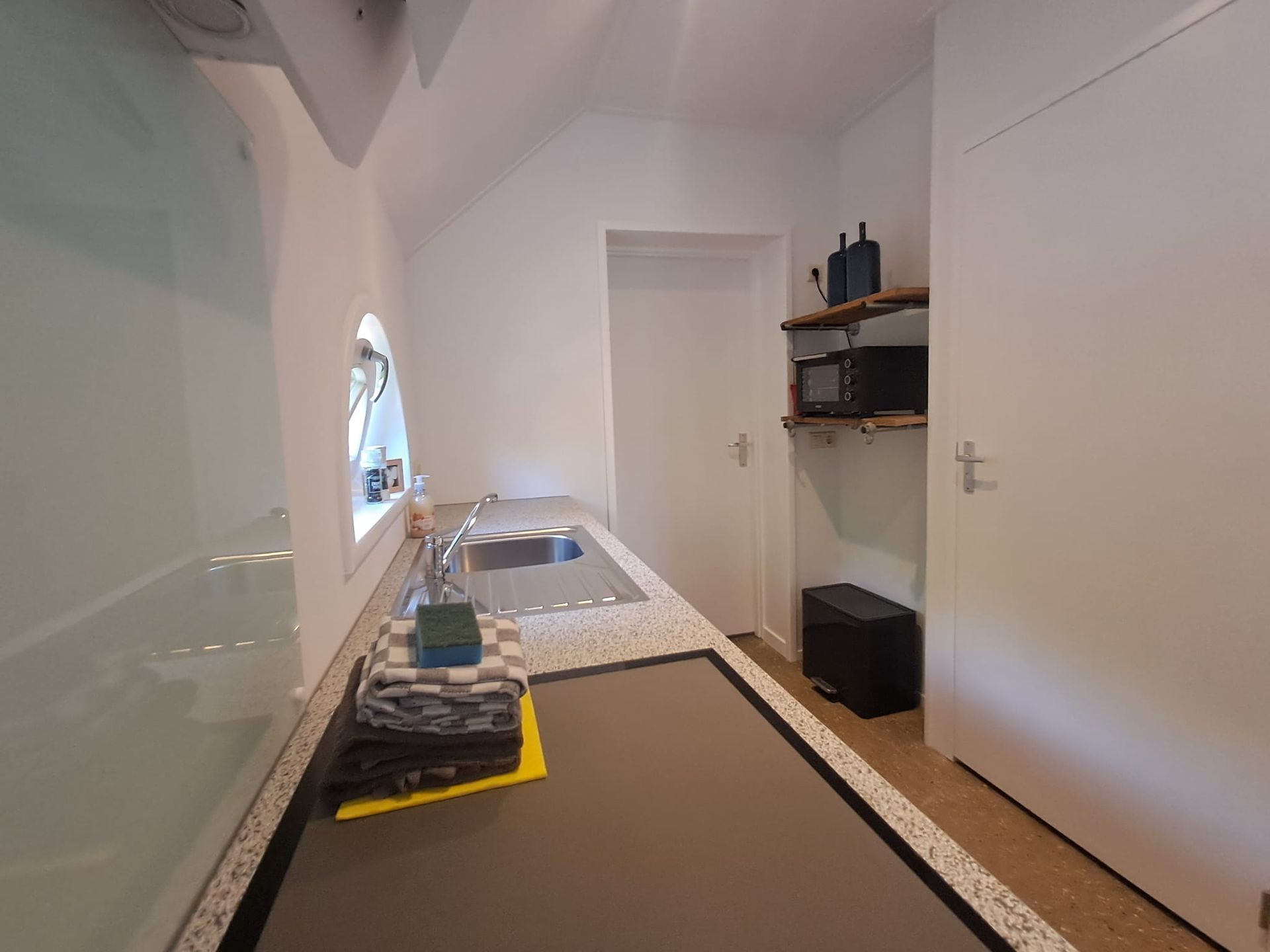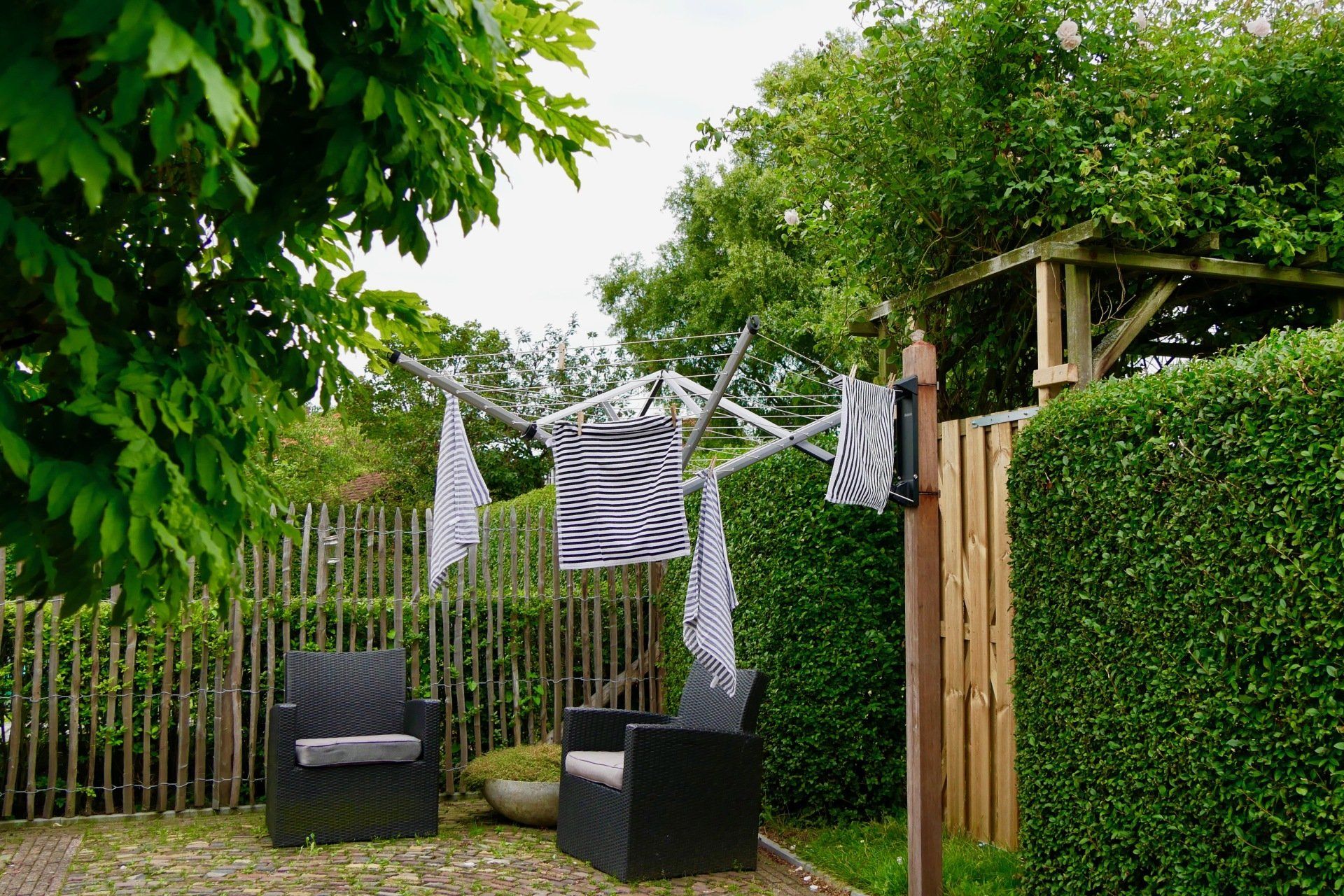 In diesem einzigartigen Raum können Sie die frische Luft so richtig genießen. Dank der privaten, nach Süden ausgerichteten Terrasse genießen Sie das ganze Jahr über reichlich Sonnenlicht. Die Terrasse ist mit bequemen Gartenmöbeln ausgestattet, inklusive Sonnenschirm, der Sie an wärmeren Tagen vor den starken Sonnenstrahlen schützt. Dies ist der ideale Ort, um mit einem guten Buch zu entspannen oder eine Tasse Kaffee am Morgen zu genießen. Eine praktische Wäscheleine zum Trocknen Ihrer Wäsche trägt zum Komfort und zur Funktionalität dieses herrlichen Außenbereichs bei. Kurz gesagt: Die Terrasse lädt zum Entspannen ein und bietet den perfekten Rahmen für ruhige Momente und gesellige Zusammenkünfte.