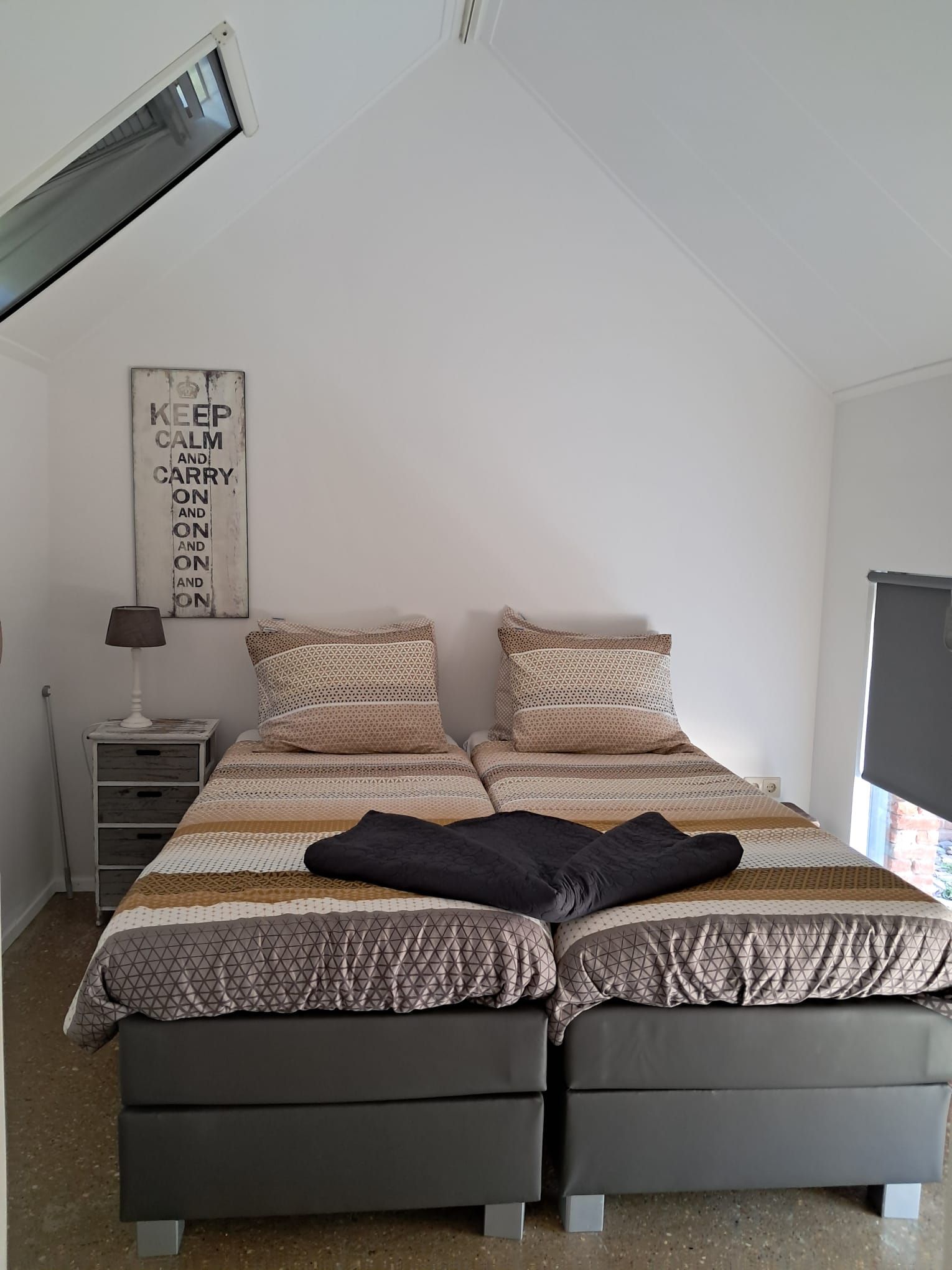 Ein wichtiger Raum, dem wir besondere Aufmerksamkeit geschenkt haben, ist das Schlafzimmer. Es wurde sorgfältig gestaltet, um eine entspannende und komfortable Atmosphäre zu schaffen. Mit zwei einzelnen Boxspringbetten ist der Schlafkomfort garantiert; sie bieten die nötige Unterstützung für einen erholsamen Schlaf. Der Kleiderschrank ist ebenfalls praktisch und durchdacht gestaltet: Sie können Ihren Koffer problemlos darunter verstauen und so zusätzlichen Platz schaffen und für Ordnung sorgen. Kurz gesagt: Dieses Zimmer ist die perfekte Kombination aus Funktionalität und Komfort – ideal für einen erholsamen Aufenthalt.