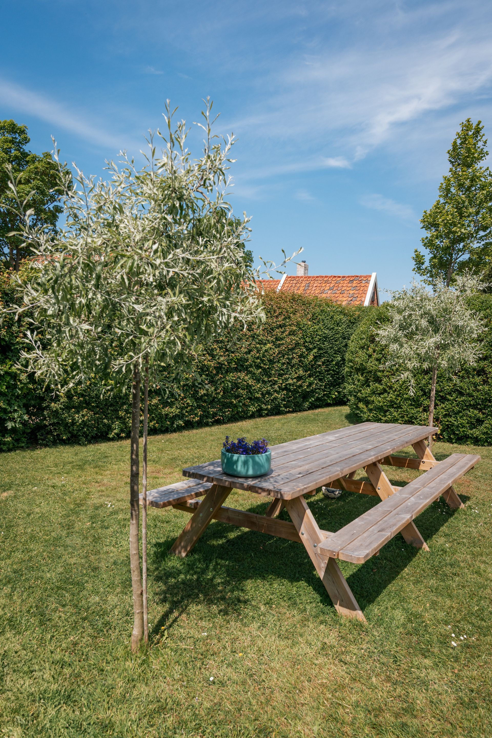 Der Garten bietet viel Platz zum Sitzen und Genießen der Sonne.