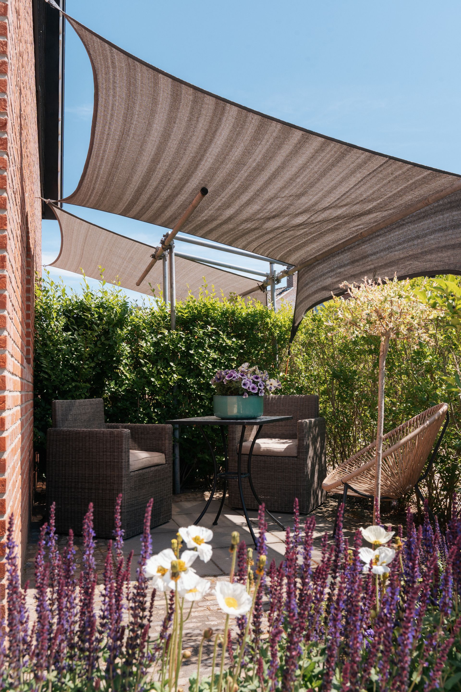 Genießen Sie die Natur. Stellen Sie sich Ihre eigene Südterrasse vor, ein einladender Ort zum Entspannen und Sonnenbaden. Diese Terrasse verfügt über ein schönes Gartenmöbel, perfekt arrangiert für gemütliche Momente. Ein Schattentuch über dem Möbel bietet nicht nur Schutz vor der grellen Sonne, sondern schafft auch eine gemütliche Atmosphäre. Hier können Sie ein gutes Buch, ein erfrischendes Getränk oder einfach die Ruhe der Natur genießen.